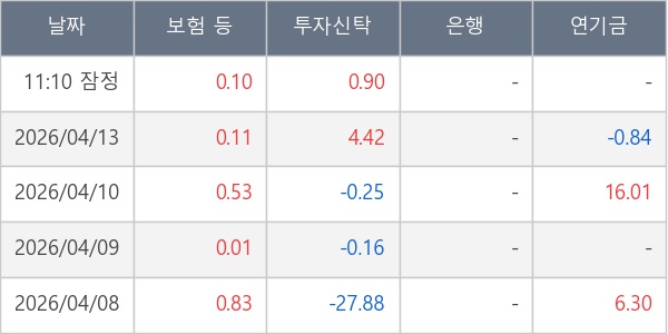 ※ 사모펀드 등 일부 기관의 순매매량은 표시되지 않음
