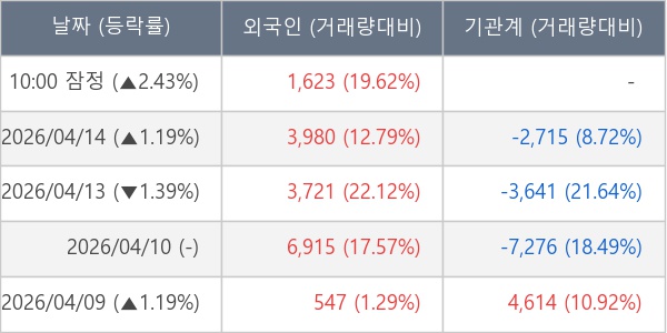 [표] 외국인ㆍ기관 순매매량 (단위 주)