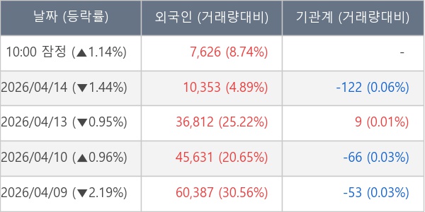 [표] 외국인ㆍ기관 순매매량 (단위 주)