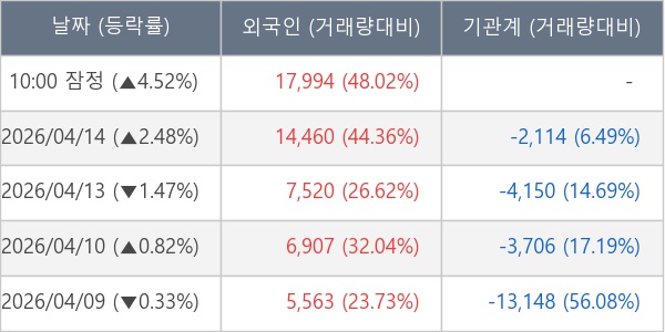 [표] 외국인ㆍ기관 순매매량 (단위 주)