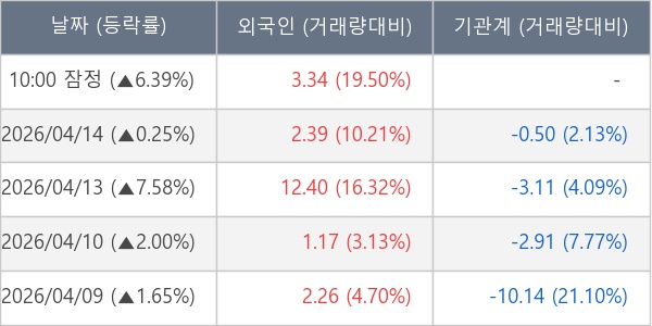 [표] 외국인ㆍ기관 순매매량 (단위 만주)