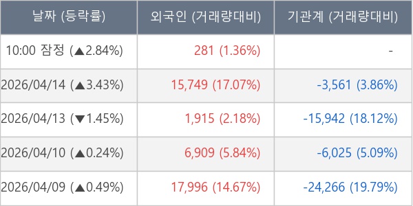 [표] 외국인ㆍ기관 순매매량 (단위 주)