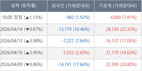 [표] 외국인ㆍ기관 순매매량 (단위 주)