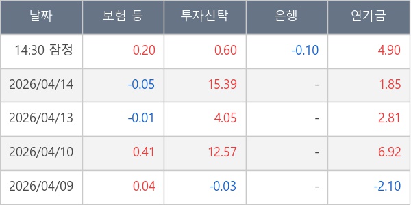 [표] 주요 기관별 순매매량 (단위 만주)