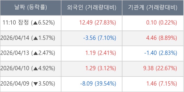 [장중수급포착] 일진전기, 외국인/기관 동시 순매수… 주가 +6.52%
