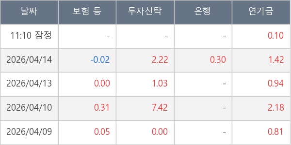 [표] 주요 기관별 순매매량 (단위 만주)