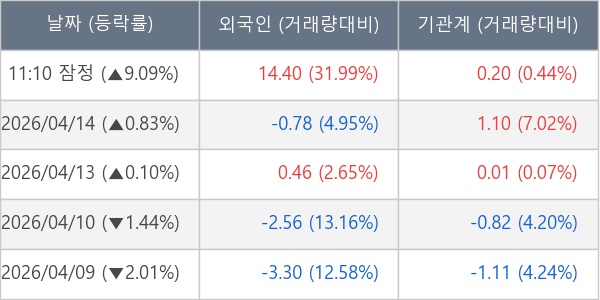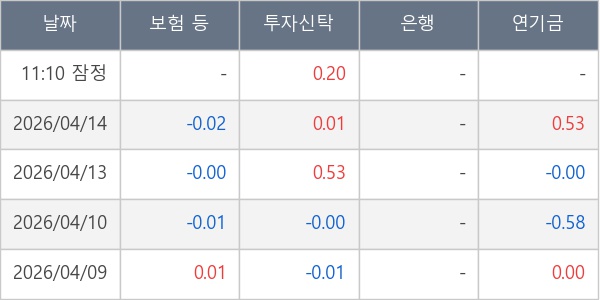 [표] 주요 기관별 순매매량 (단위 만주)