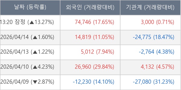 ※ 사모펀드 등 일부 기관의 순매매량은 표시되지 않음
