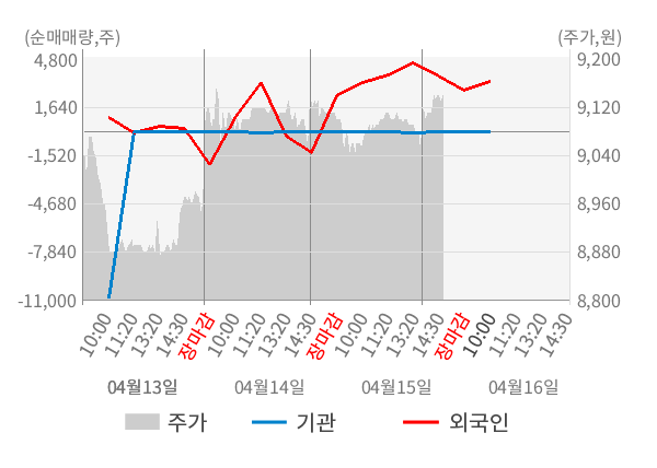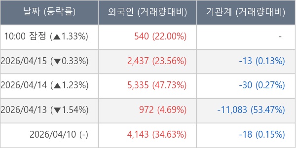 [표] 외국인ㆍ기관 순매매량 (단위 주)