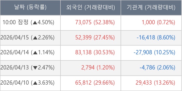 ※ 사모펀드 등 일부 기관의 순매매량은 표시되지 않음