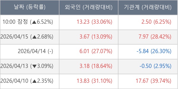 ※ 사모펀드 등 일부 기관의 순매매량은 표시되지 않음