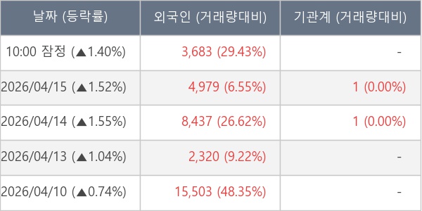 [표] 외국인ㆍ기관 순매매량 (단위 주)