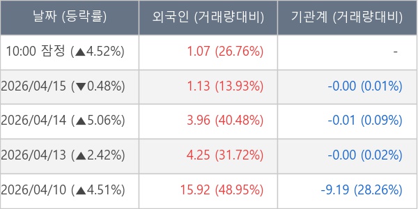 [표] 외국인ㆍ기관 순매매량 (단위 만주)