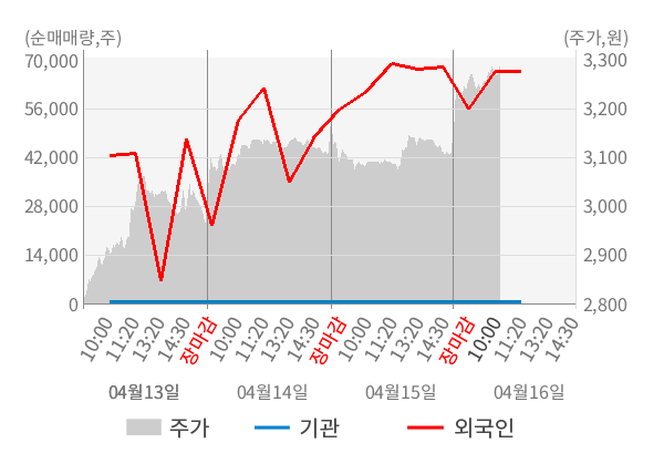 [서울=뉴스핌] 로보뉴스 = 16일 10시 15분 현재 자이언트스텝(289220)은 전일 대비 4.52% (현재가 3,240원) 상승했고, 외국인이 최근 5일 연속 순매수(누적 26.32만 주, 잠정) 행진을 하고 있다.