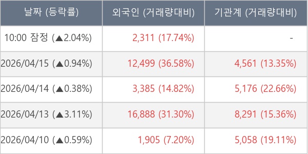 [표] 외국인ㆍ기관 순매매량 (단위 주)
