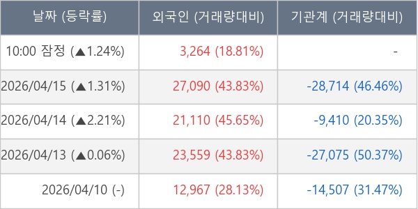 [표] 외국인ㆍ기관 순매매량 (단위 주)