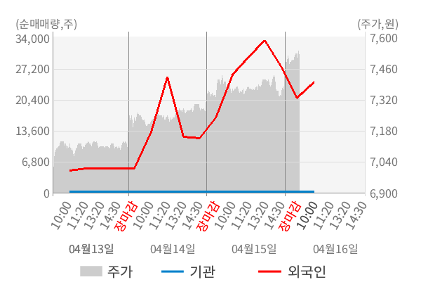 [서울=뉴스핌] 로보뉴스 = 16일 10시 15분 현재 모티브링크(463480)는 전일 대비 2.46% (현재가 7,510원) 상승했고, 외국인이 최근 9일 연속 순매수(누적 10.44만 주, 잠정) 행진을 하고 있다.