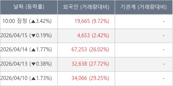 [표] 외국인ㆍ기관 순매매량 (단위 주)