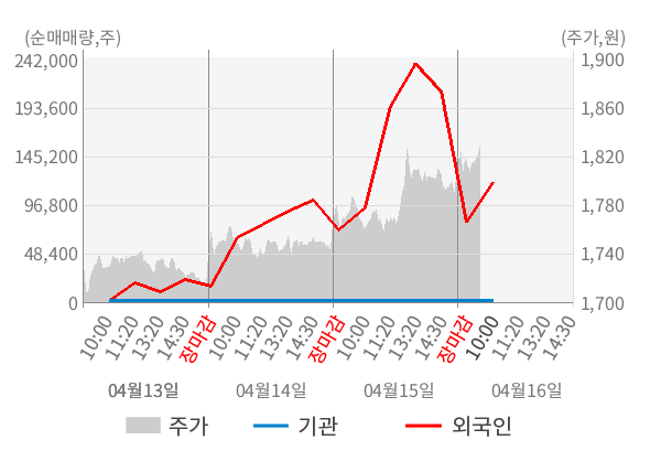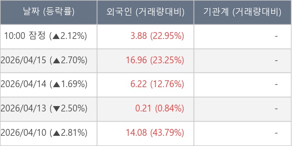 [서울=뉴스핌] 로보뉴스 = 16일 10시 15분 현재 샤페론(378800)은 전일 대비 2.12% (현재가 1,828원) 상승했고, 외국인이 최근 7일 연속 순매수(누적 64.36만 주, 잠정) 행진을 하고 있다.