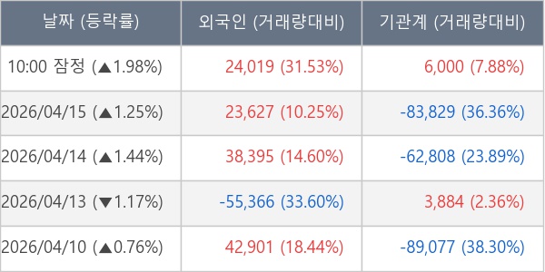 ※ 사모펀드 등 일부 기관의 순매매량은 표시되지 않음