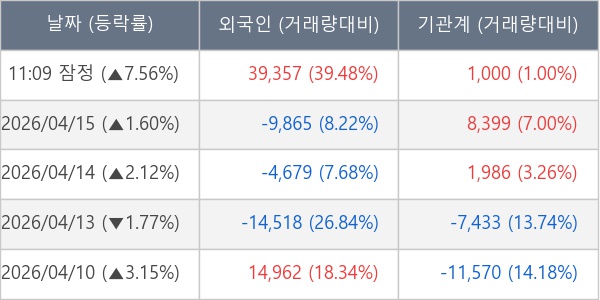 ※ 사모펀드 등 일부 기관의 순매매량은 표시되지 않음