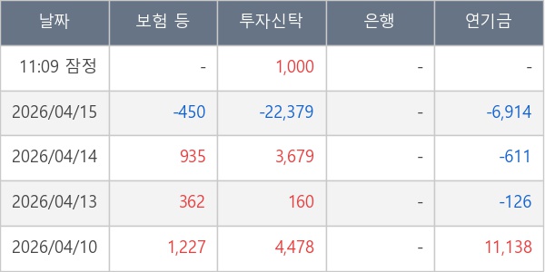 [표] 주요 기관별 순매매량 (단위 주)