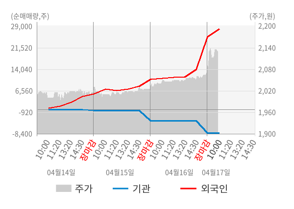 [서울=뉴스핌] 로보뉴스 = 17일 10시 15분 현재 씨앤투스(352700)는 전일 대비 2.90% (현재가 2,130원) 상승했고, 외국인이 최근 6일 연속 순매수(누적 48,952주, 잠정) 행진을 하고 있다.