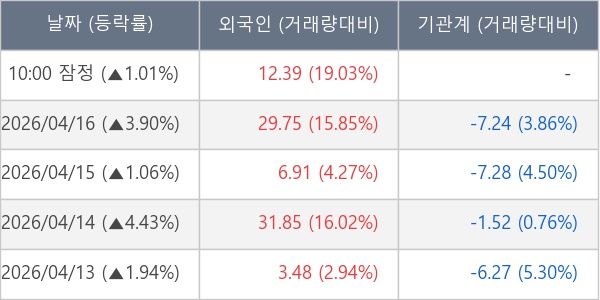 [표] 외국인ㆍ기관 순매매량 (단위 만주)