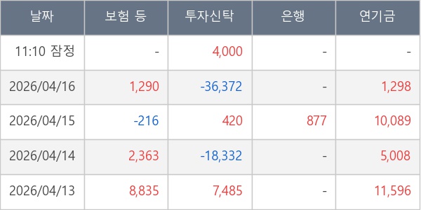 [표] 주요 기관별 순매매량 (단위 주)