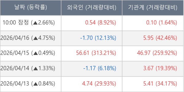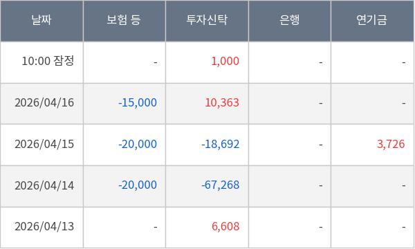 [표] 주요 기관별 순매매량 (단위 만주)