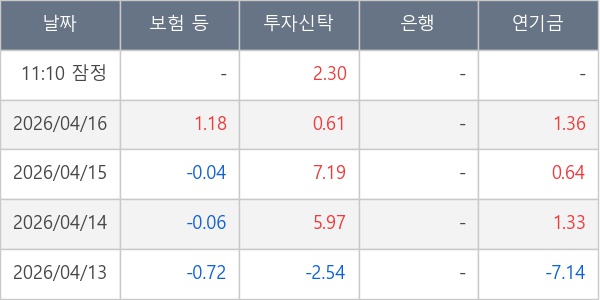 [표] 주요 기관별 순매매량 (단위 만주)