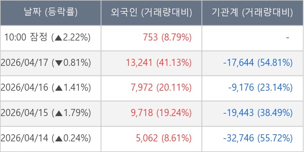 [표] 외국인ㆍ기관 순매매량 (단위 주)