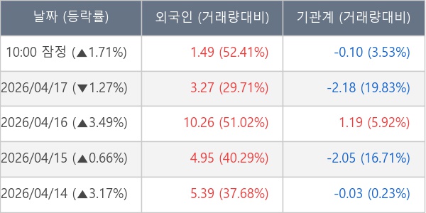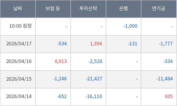 [표] 주요 기관별 순매매량 (단위 만주)
