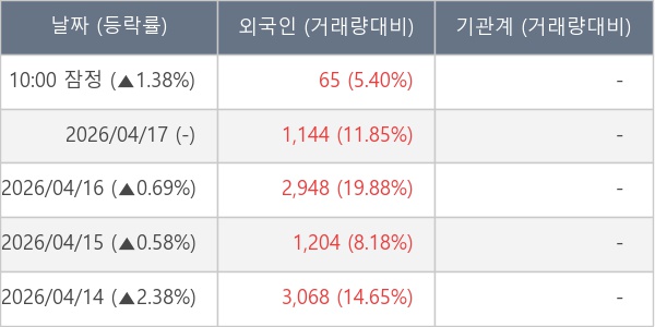 [표] 외국인ㆍ기관 순매매량 (단위 주)