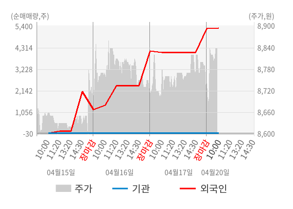 [서울=뉴스핌] 로보뉴스 = 20일 10시 15분 현재 티디에스팜(464280)은 전일 대비 1.38% (현재가 8,840원) 상승했고, 외국인이 최근 5일 연속 순매수(누적 8,429주, 잠정) 행진을 하고 있다.