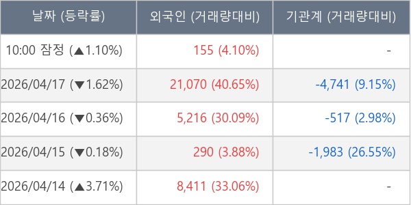 [표] 외국인ㆍ기관 순매매량 (단위 주)