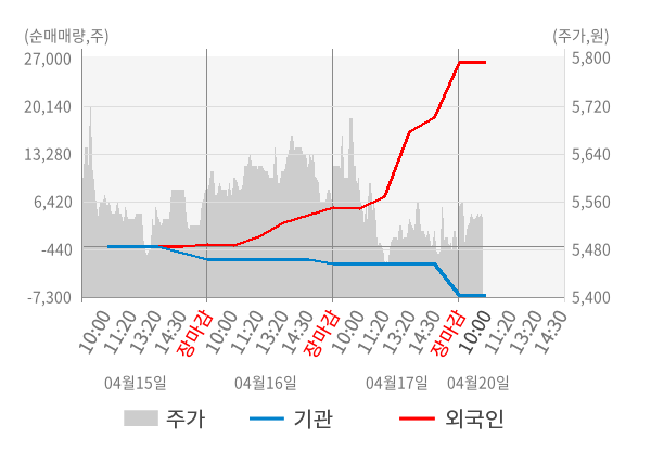 [서울=뉴스핌] 로보뉴스 = 20일 10시 15분 현재 에스켐(475660)은 전일 대비 1.10% (현재가 5,530원) 상승했고, 외국인이 최근 5일 연속 순매수(누적 35,142주, 잠정) 행진을 하고 있다.