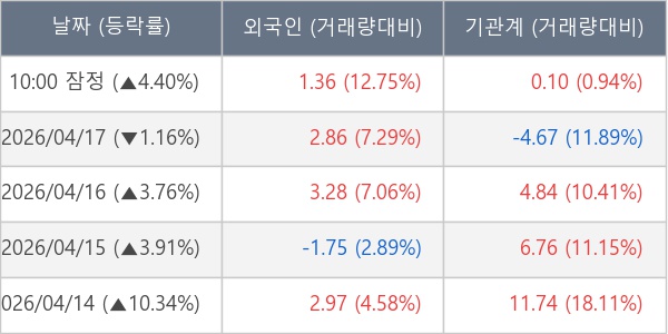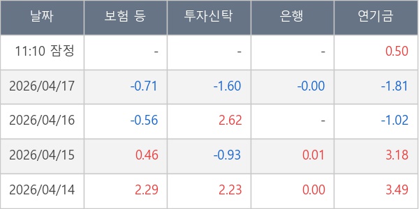 [표] 주요 기관별 순매매량 (단위 만주)