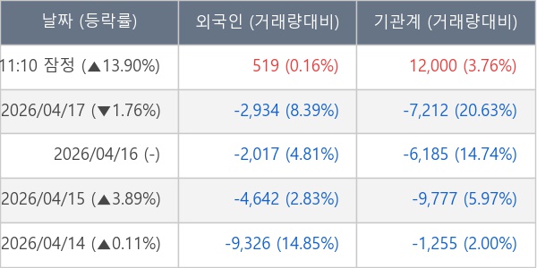 [표] 주요 기관별 순매매량 (단위 주)