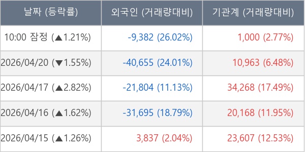 [표] 외국인ㆍ기관 순매매량 (단위 주)