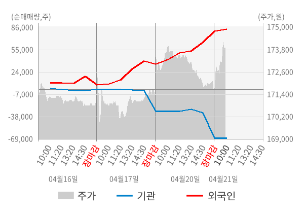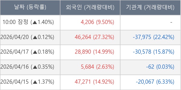 [표] 외국인ㆍ기관 순매매량 (단위 주)