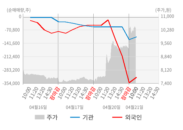 [표] 주요 기관별 순매매량 (단위 만주)