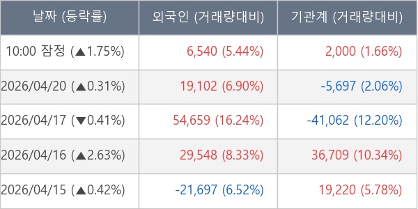 [표] 주요 기관별 순매매량 (단위 주)