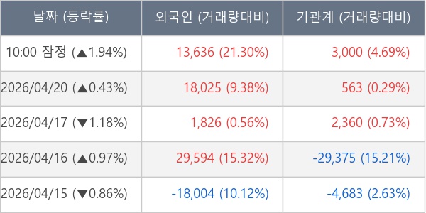 ※ 사모펀드 등 일부 기관의 순매매량은 표시되지 않음