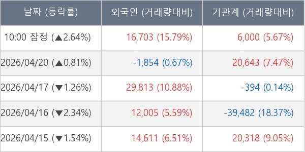 [표] 주요 기관별 순매매량 (단위 주)