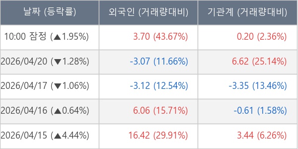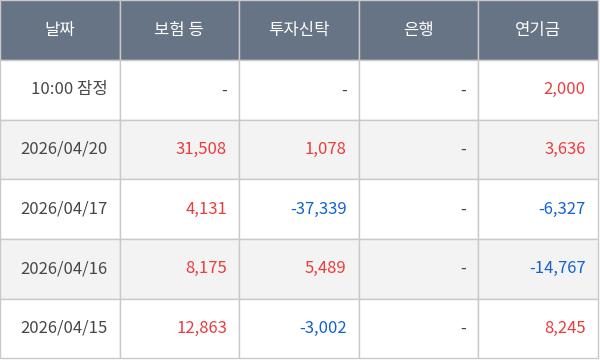 [표] 주요 기관별 순매매량 (단위 만주)