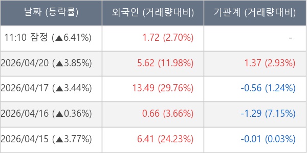 [표] 외국인ㆍ기관 순매매량 (단위 만주)