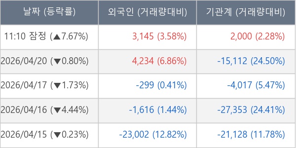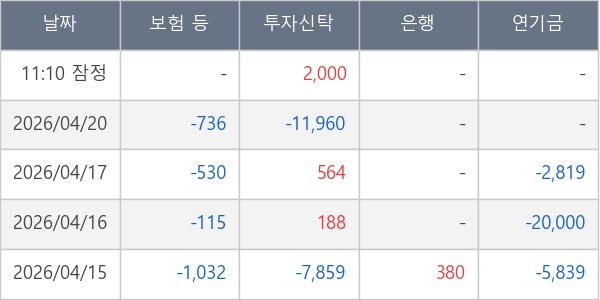 ※ 사모펀드 등 일부 기관의 순매매량은 표시되지 않음