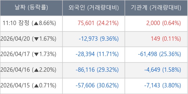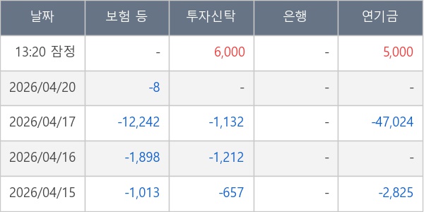 [표] 주요 기관별 순매매량 (단위 주)