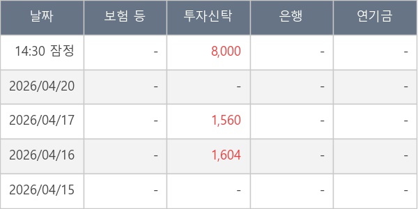 ※ 사모펀드 등 일부 기관의 순매매량은 표시되지 않음
